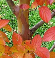 a smooth tortoise shell, and is especially noticed in winter. This plant also puts on a show of delicate, 2" single white flowers with orange anthers in the middle of July, when few other trees or shrubs are blooming.Hardy to Zone 5, possibly 4. |