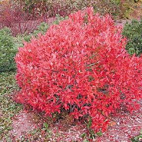 | In July and August, birds relish the sweet and juicy blue fruits, and the glowing red fall color is nothing less than spectacular. Even in winter, the twiggy and twisted branches form a lovely silhouette, especially with a light dusting of snow. It grows moderately up to 2’ tall, and 2’ wide. It prefers full sun, with moist but well-drained acid soil. Hardy to USDA Zone 2. | ||||